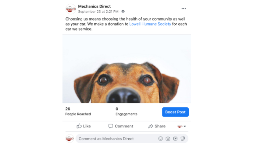 It’s like a postcard that shows up in your target market’s Facebook feed so your target audience will see you when they need you. It’s one of the best branding opportunities on the internet for your shop.